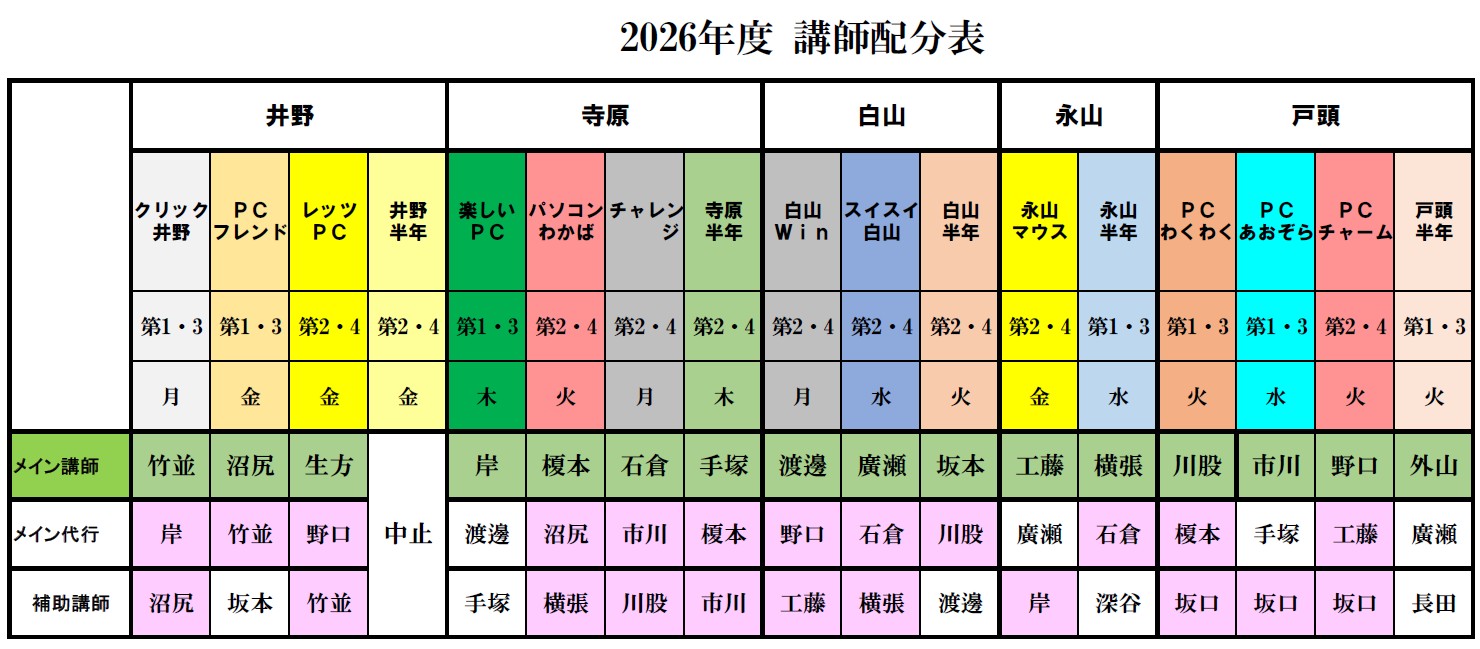 会員の講師配分表